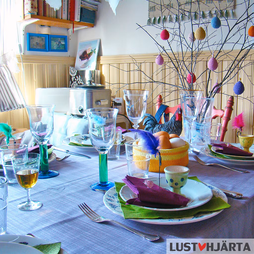 Äggen finns i olika färger, blanda som du vill i ditt påskris.