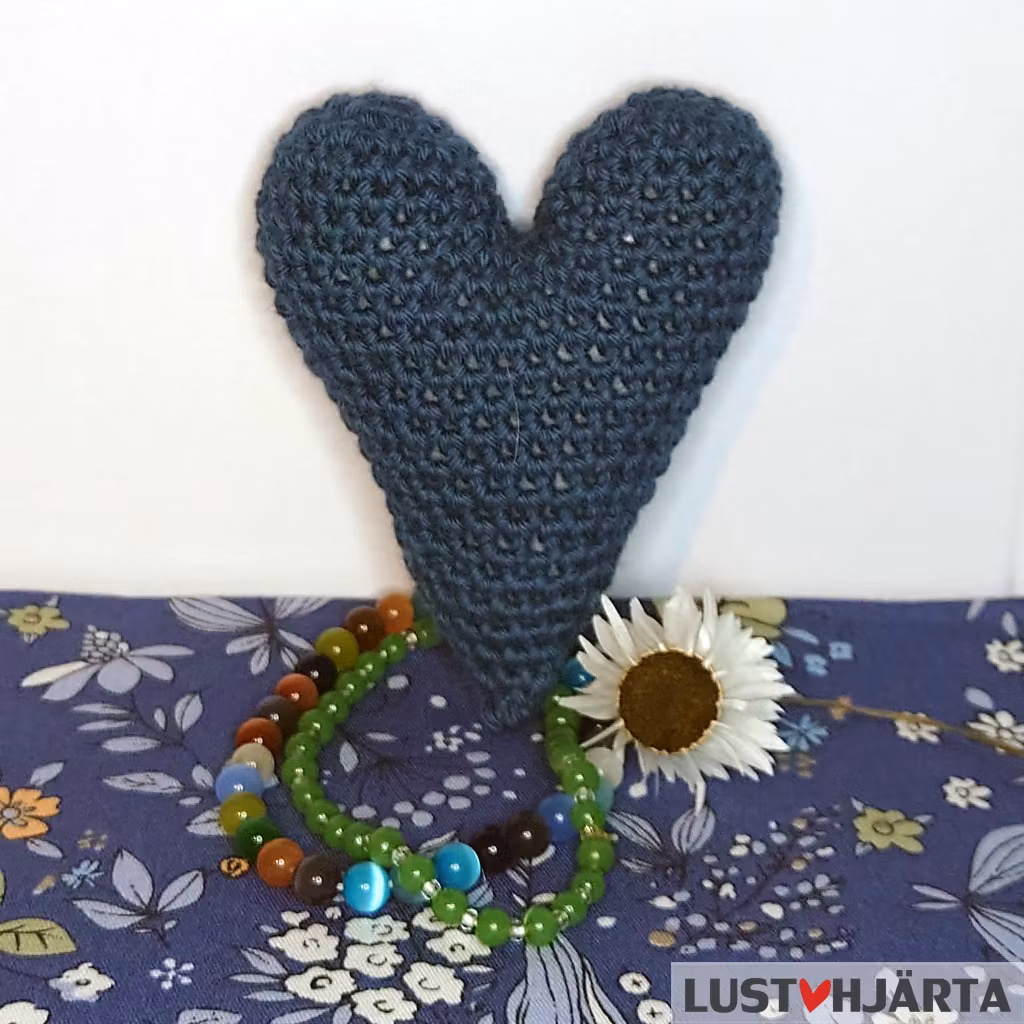 Fint virkat blått hjärta att dekorera med. Häng upp, pryd en krans eller lägg fint någonstans. Eller varför inte ge bort till någon du tycker om. Kanske på Alla hjärtans dag?