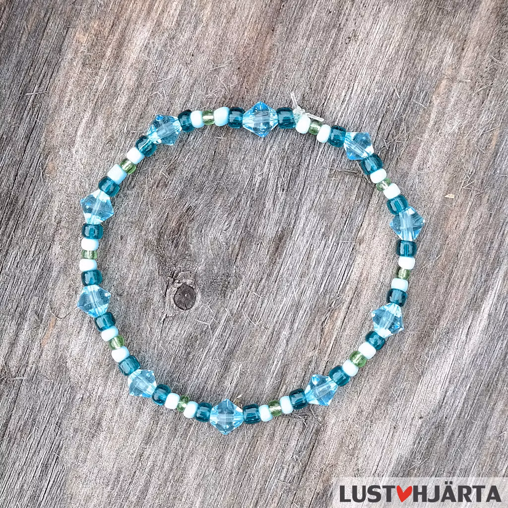Du kan variera handledsvärmarna genom att välja om du vill ha pärlorna på eller inte. Du kan också vända handledsvärmarna så resåren kommer över handen istället för runt handleden för att variera hur de ser ut. Och givetvis kan du använda pärlorna som armband utan handledsvärmarna.