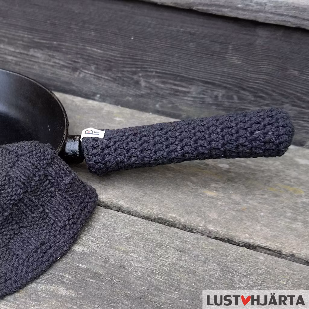 Ett virkat handtagsskydd för stekpannan så du slipper bränna dig när du steker pannkakor.